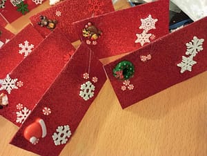 Busy sticking and designing our place cards for Christmas and Boxing Day Dinner.