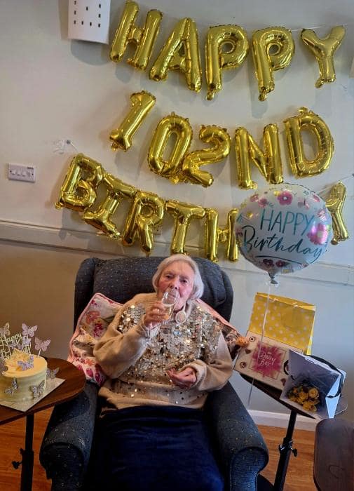 Celebrating this wonderful lady’s 102nd Birthday. We celebrated with bubbles & a beautiful birthday cake.All the staff members at westerleigh nursing home truely wish you the most fantastic Happy 102nd Birthday xxx.