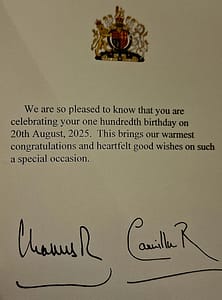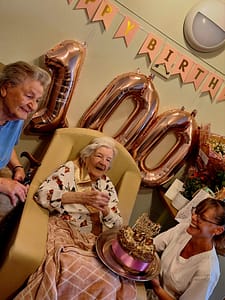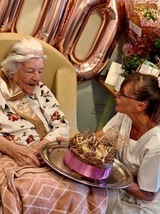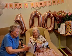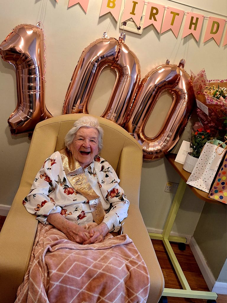 We celebrate a special 100th birthday today for this fabulous lady .We have had a lovely afternoon with gifts of flowers ,chocolates and home made birthday cake by Vicky our chef and of course a telegram from the king and Queen consort.