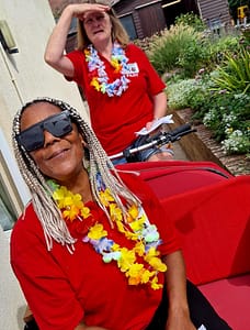 Cycling Without Age – Seaford Chapter group joined Westerleigh Nursing Home in our annual garden party photographed with MP James MacCleary . This fabulous charity visit Westerleigh every Friday and take our residents along the prom today they joined in our celebration’s with the residents.